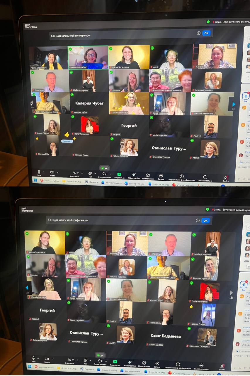 Финальный круг беззвучного созвучия с выключенными микрофонами, но так точно ощущаемой совместностью - это стало ценным финалом. Пели, играли на инструментах. Радует, что музыка стала регулярно присутствовать в наших встречах, равно как и внутренняя тишина. Ждём новых встреч с с предвкушением и надеждой на продуктивное сотрудничество. Пишите по любым вопросам любому из членов Совета на почту ampp.russia@yandex.ru - мы на связи и открыты для общения и поддержки ваших инициатив 🙏